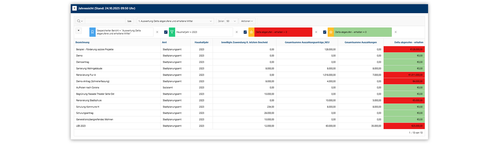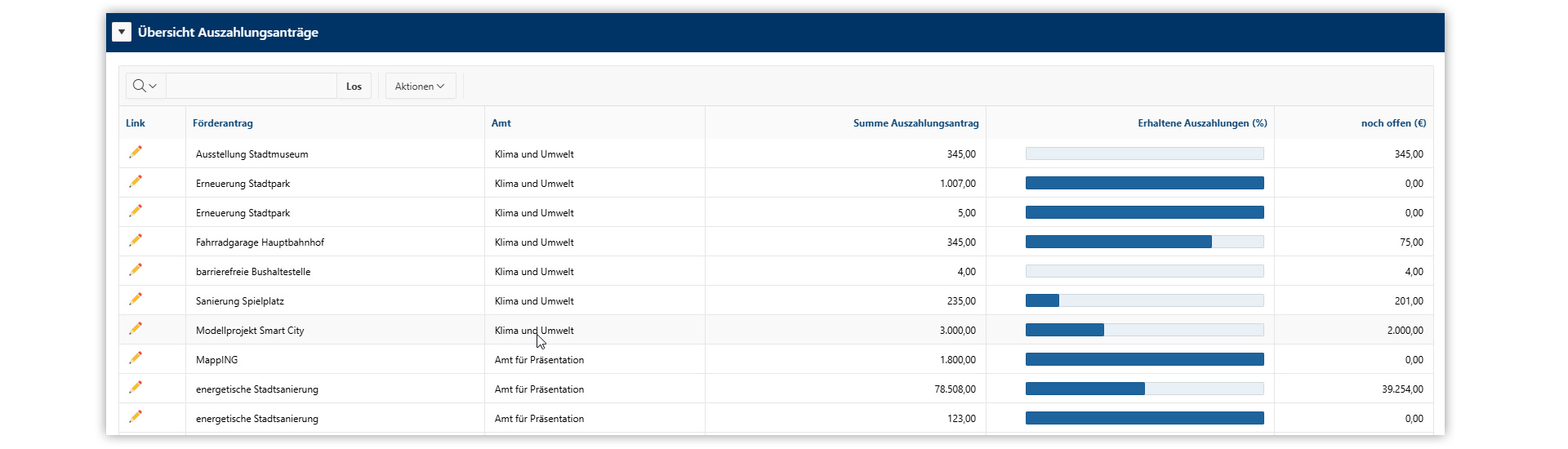 Die Sicht ‚Fördermittelempfänger‘ ermöglicht Kommunen und Institutionen, ihre Fördermittel im Blick zu behalten und ein effizientes Fördermittelcontrolling zu betreiben.