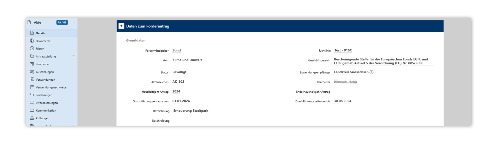 - Erfassung Richtlinie mit vergaberelevanten Informationen (z.B. geforderte Unterlagen, maximale Fördersätze)